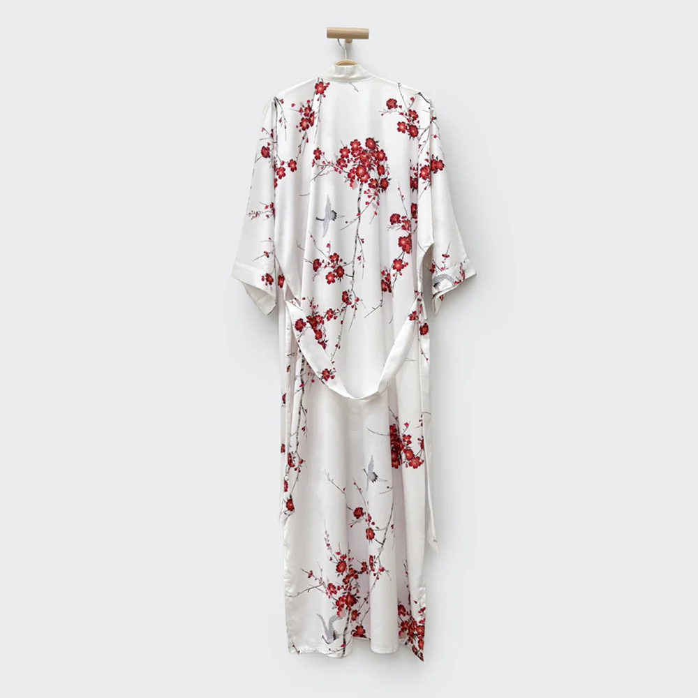 Cherry Blossom & Crane Long Kimono Robe